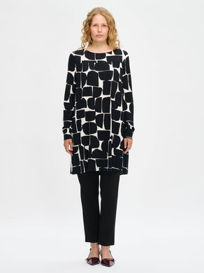 Kuviollinen trikootunika taskuilla