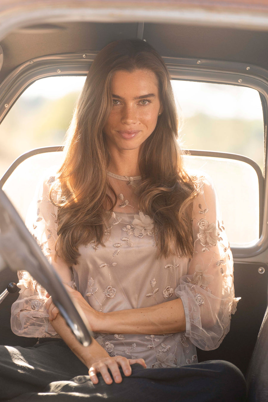 Florence Blouse – romanttinen sifonkipusero brodeerauksella ja 3D-kukilla. Löysä malli, puhvihihat, joissa resori ja satiininauha niskassa - täydellinen juhlapusero. Puseroon kuuluu saman sävyinen satiinitoppi säädettävillä olkaimilla.