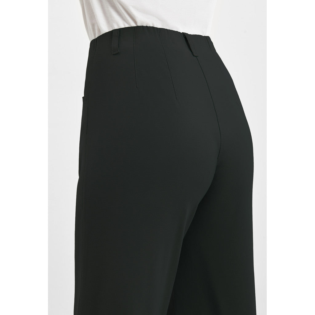Cropped trousers with elastic inside waistband tube, rounded front pockets and belt loops.