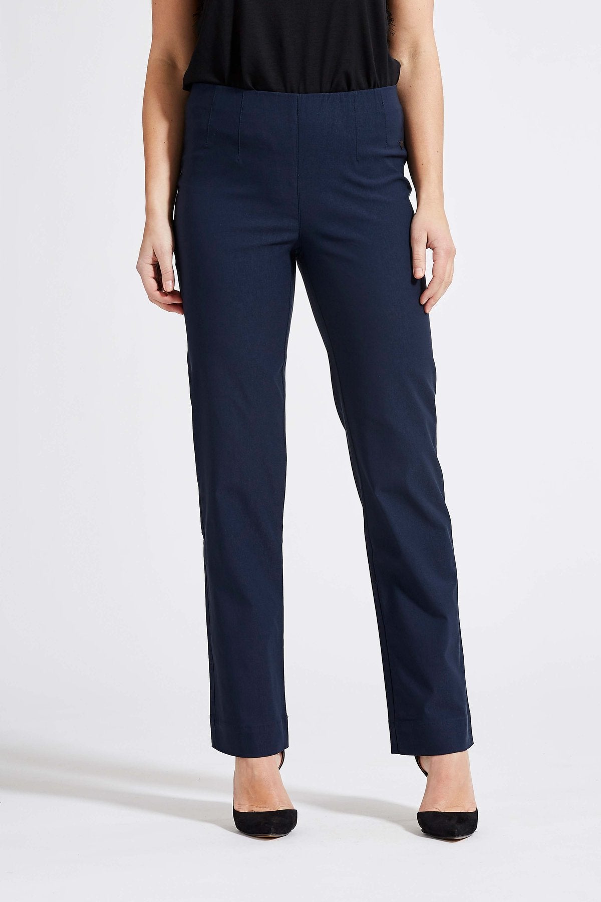 Laurien ihanat ihmehousut aikuiselle naiselle Malli Straight cut (suora lahje), värit musta ja sininen. Suora lahje sopii hyvin mm. tunikoiden, jakkujen ja mekkojen kanssa pidettäväksi.