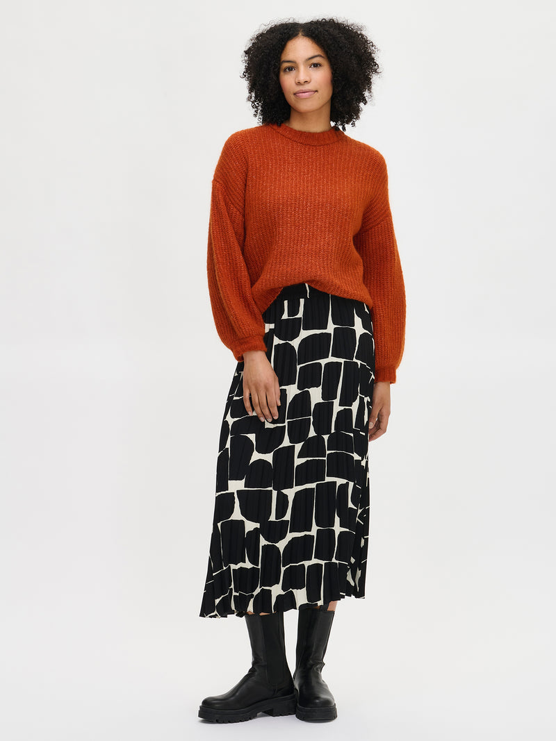 Naisten kuviollinen Muuri-hame laskeutuu kauniisti ja on viimeistelty kapealla pliseerauksella sekä joustavalla vyötäröllä. Pituus koossa 38 on noin 85 cm. Helppohoitoinen polyesterimateriaali säilyttää vekit siisteinä käytössä. Monikäyttöinen Muuri-hame on helppo yhdistää eri yläosiin ja sopii niin arkeen kuin juhlaankin – aina tyylikäs valinta.
