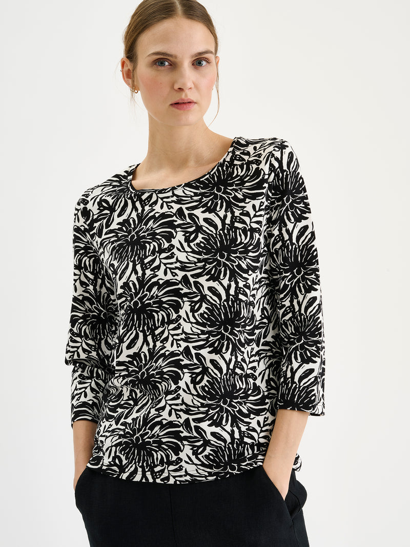 Nanson mustavalkoinen Safiiri-trikoopusero tyylikkäällä kuosilla.
