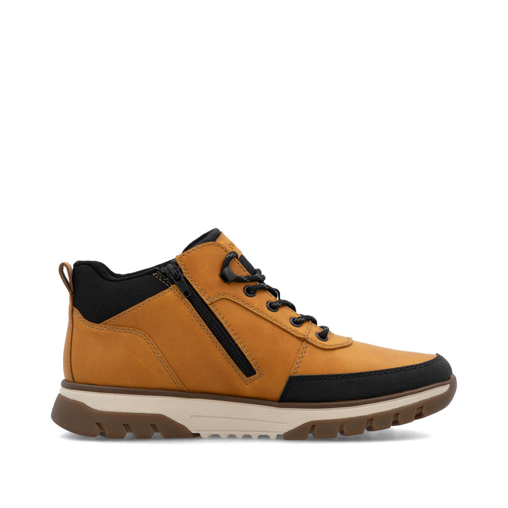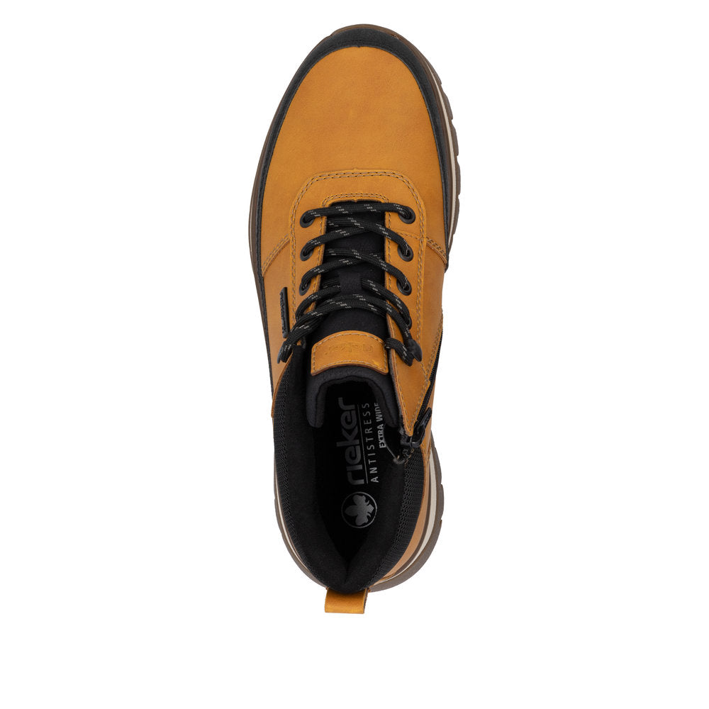 Tyylikäs miesten Rieker talvinilkkuri. Vettähylkivä RiekerTex®-kalvo, mikrovelourvuori ja pitävä kumipohja tekevät tästä kunnon talvikengän päivittäiseen käyttöön. Erikoisleveä H-lesti sekä irrotettavat MemoCup-pohjalliset.