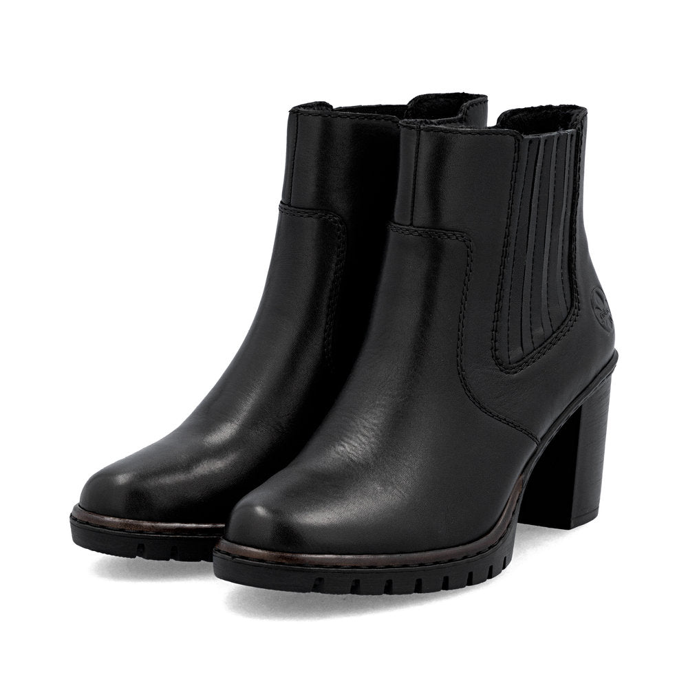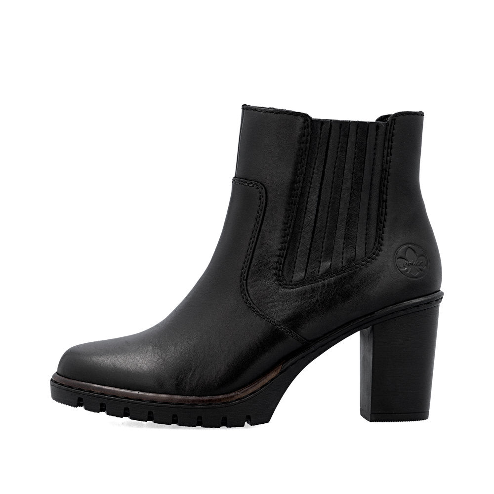 Rieker naisten nilkkurit aitoa nahkaa. Näyttävä korko sekä hillityn rouhea ja pitävä ulkopohja.