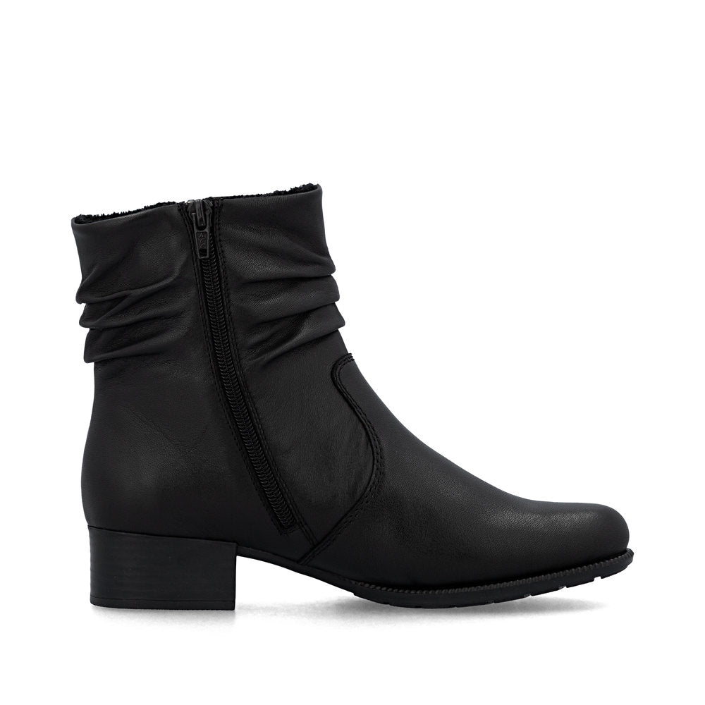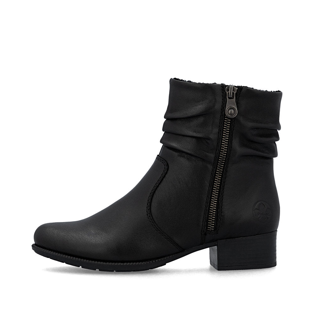 Nahkainen Rieker nilkkuri kauniilla yksityiskohdilla ja pienellä kannalla. Tässä nilkkurissa materiaalit ovat huippuluokkaa: pehmeää nahkaa ja vetoketju helpottamassa pukemista. Pieni kanta antaa mukavasti ryhtiä ja varren koriste viimeistelee ulkönäön.