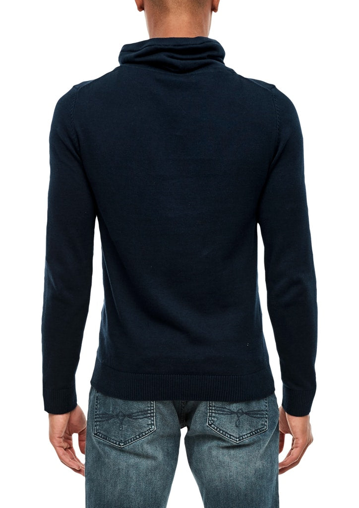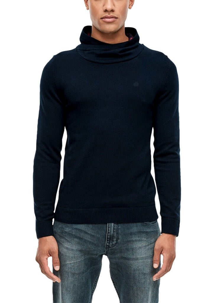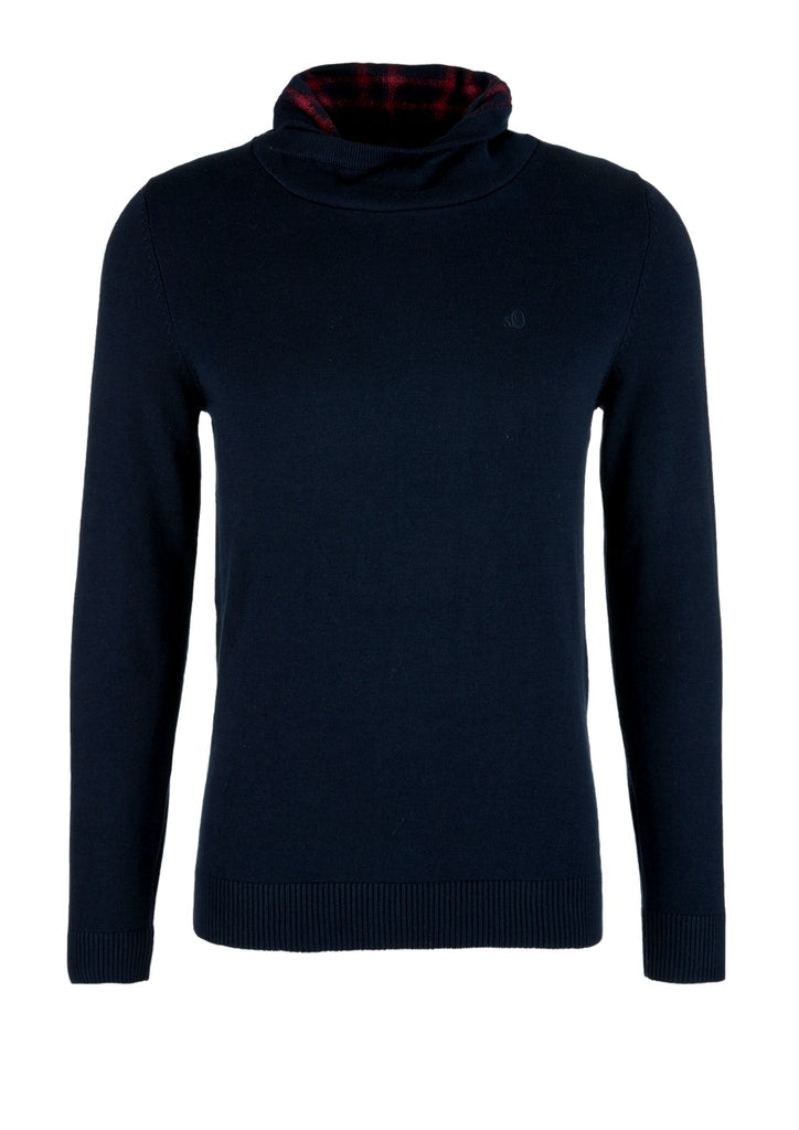With the choice of a colour block look with a contrasting shoulder section or plain, Loose polo neck with a wrap-over effect and check lining, Ribbed sleeve cuffs and hem, Regular fit; back length approx. 72 cm in size M, Smooth knit fabric made of pure cotton