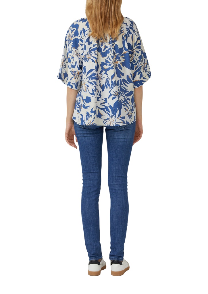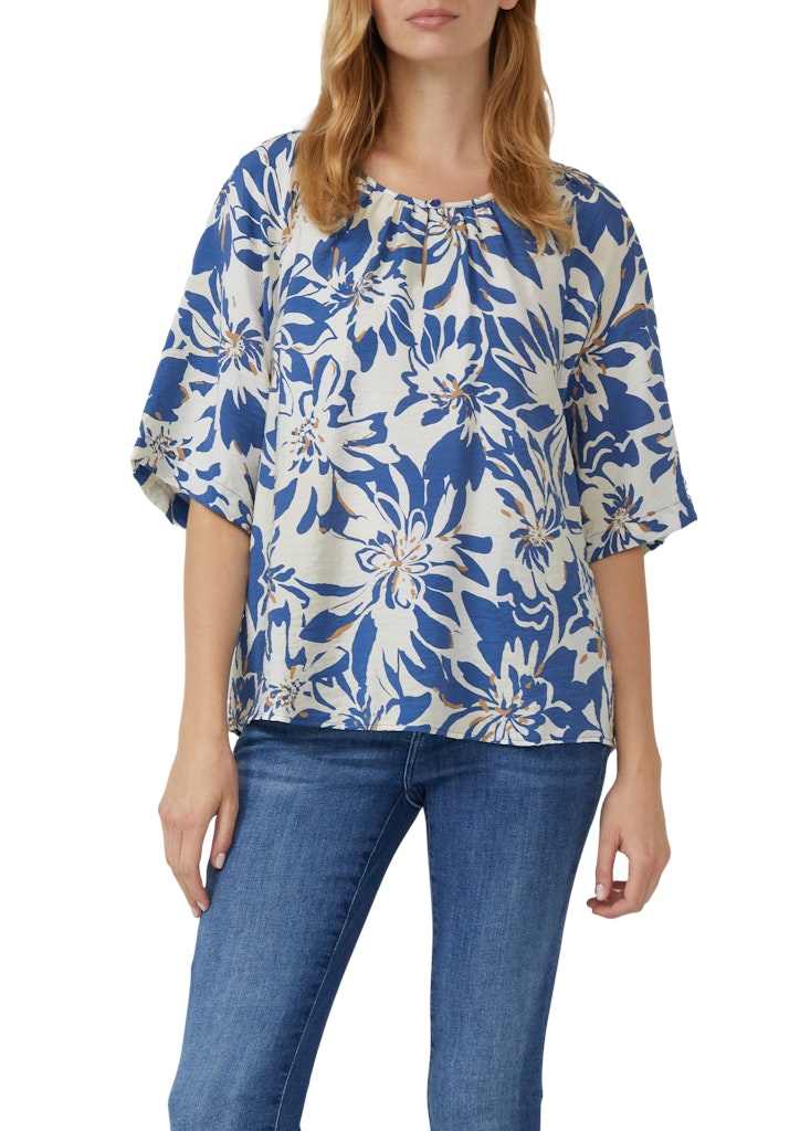 This flowing viscose blouse brings effortless charm to your everyday wardrobe. The all-over print catches the eye, whilst gathered details add a feminine touch. Perfect for casual coffee dates or relaxed weekend plans – simply pair with your favourite jeans and you're ready to go.