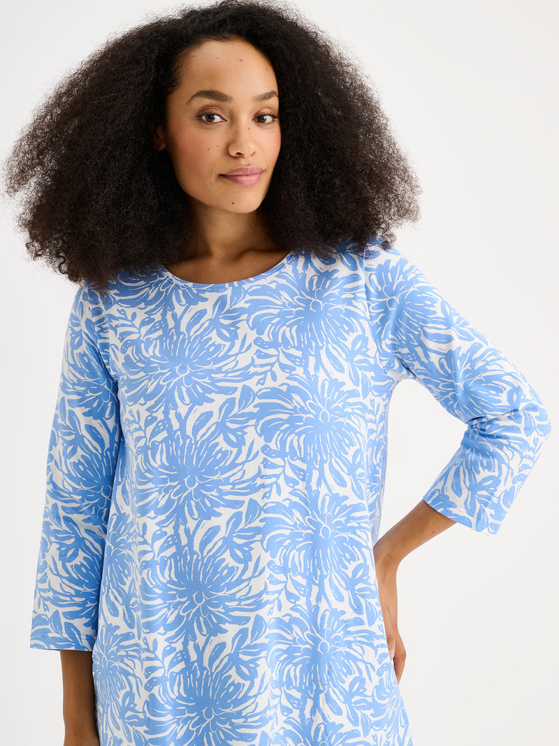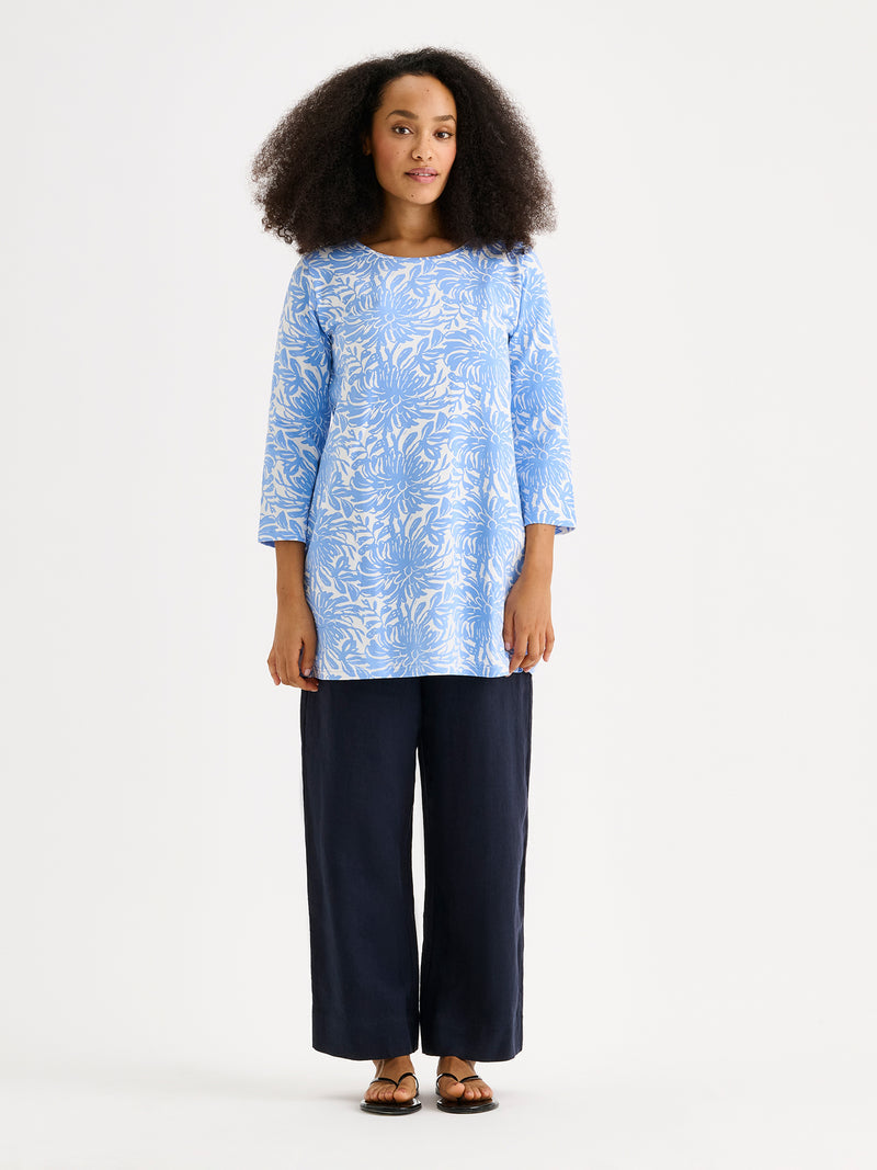 Kuosillinen Kaislat-tunika, jossa on harmoninen kaksisävyinen kuosi sekä klassinen malli. Yksinkertainen ja suosittu tunikamalli on mukavan arkipukeutumisen kulmakivi. Materiaali on miellyttävää ja joustavaa puuvilla-elastaani-neulosta.